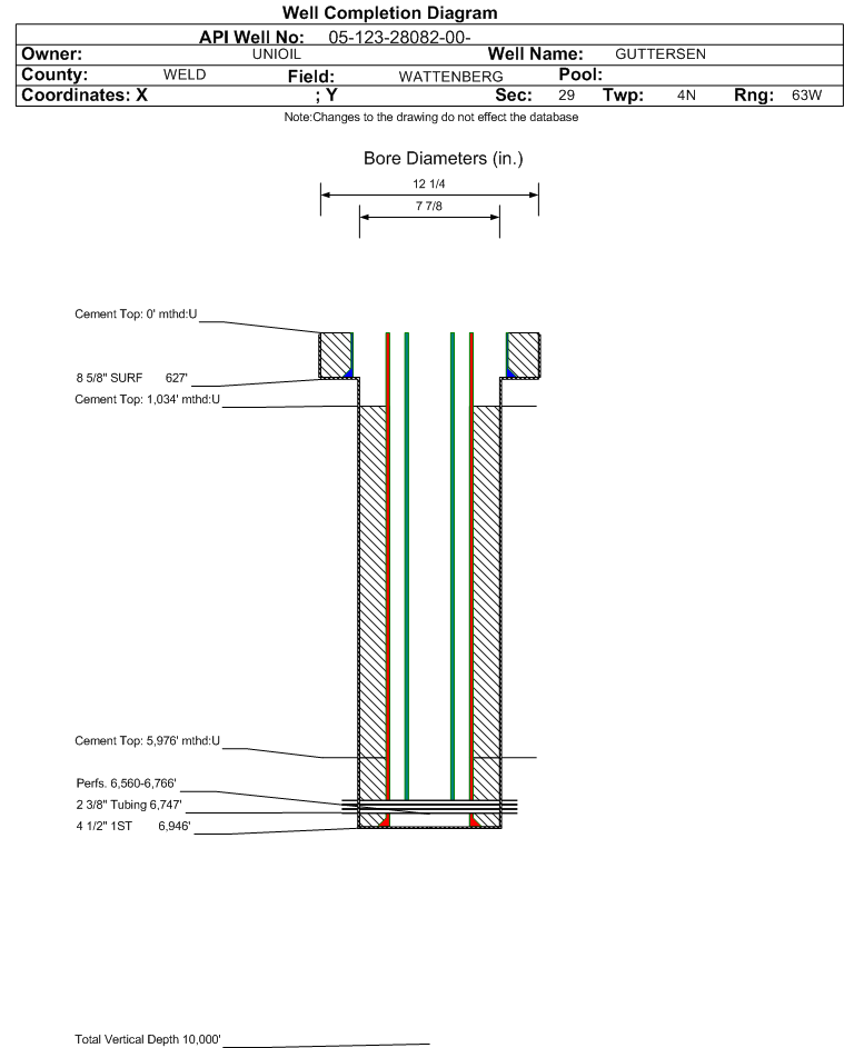 Wellbore #00 Wellbore Classification: OW Status: PA - 12/20/2022 Measured TD: 6969 ft.| Wellbore Data for Original Wellbore | Wellbore Classification: OW PA - 12/20/2022 | | Wellbore Permit | DRIFTED | | Permit #: | 20084096 | Expiration Date: | 8/17/2009 | | Proposed Depth/Form: | 7600 ft. | | Surface Mineral Owner Same: | No | | Mineral Owner: | FEE | Surface Owner: | FEE | | Unit: | | Unit Number: | | | Formation And Spacing: | Code: JSND , Formation: J SAND , Order: , Unit Acreage: 160, Drill Unit: GWA | | Formation And Spacing: | Code: NB-CD , Formation: NIOBRARA-CODELL , Order: , Unit Acreage: 160, Drill Unit: GWA |