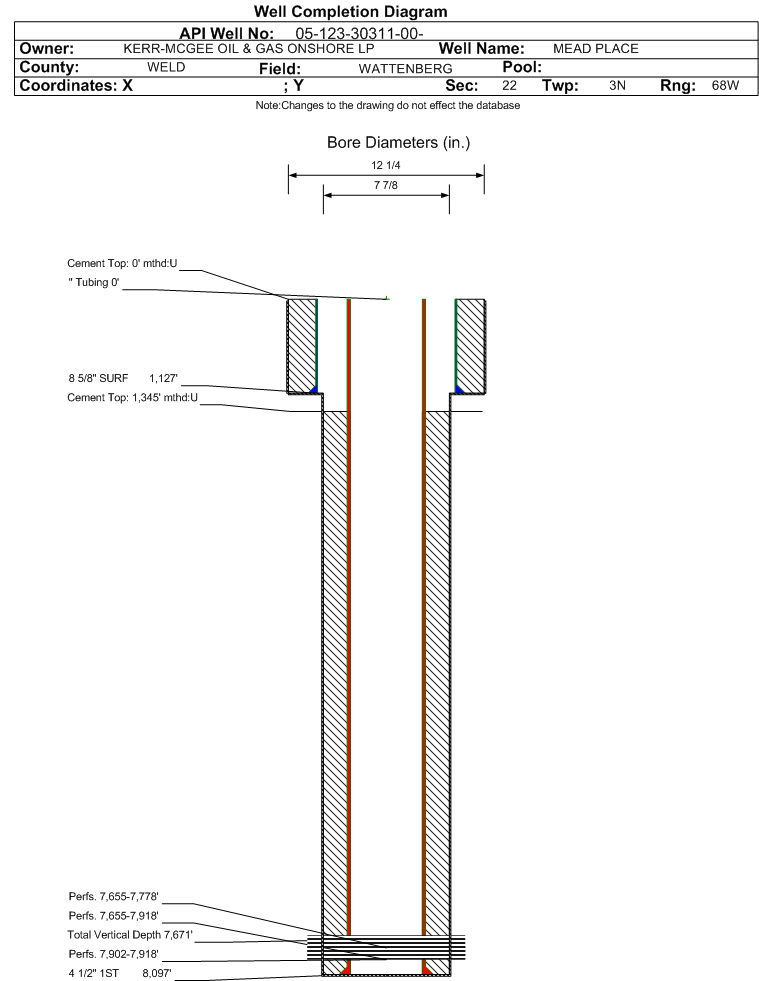 | | Perforation Data: | | Interval Top: | 7655 ft. | # Of Holes: | 58 | | Interval Bottom: | 7778 ft. | Hole Size: | 0.42 in. |
