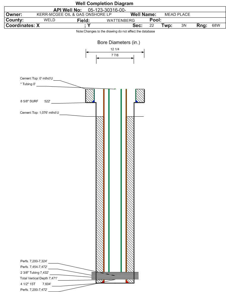 | | Perforation Data: | | Interval Top: | 7200 ft. | # Of Holes: | 126 | | Interval Bottom: | 7472 ft. | Hole Size: | 0.38 in. |