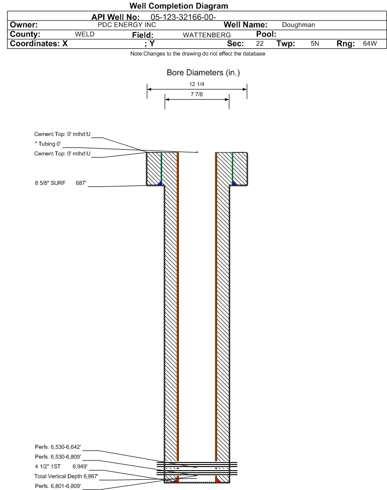 Cement:Sacks: 740, Top: 0 ft., Bottom: 6949 ft., Determination Method: CBL