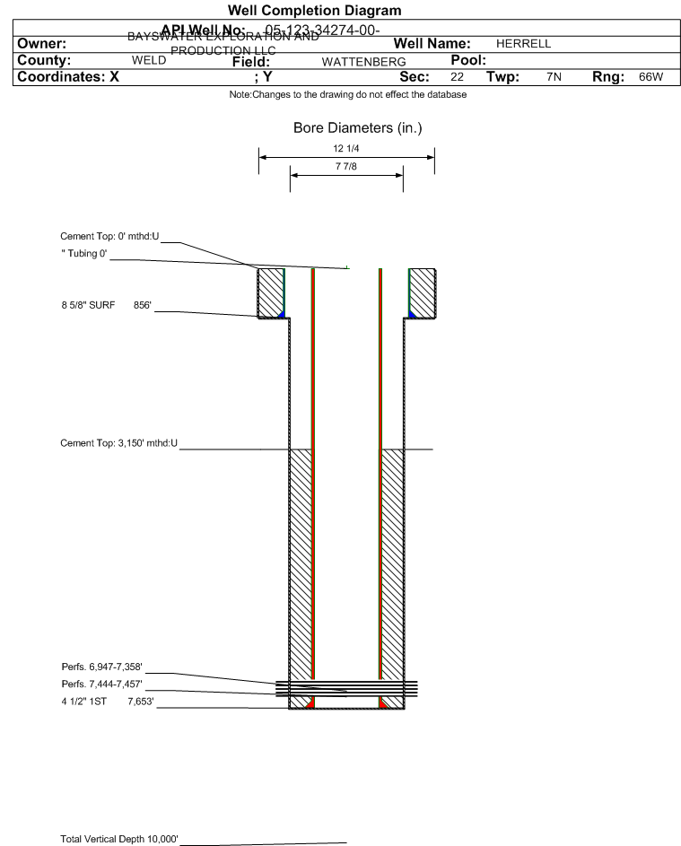Formation NB-CD Formation Classification: OW Status: AB - 4/7/2023 Interval Top: 6947 ft. Interval Bottom: 7457 ft.| Completed Information for Formation NIOBRARA-CODELL | | 1st Production Date: | 11/5/2013 | Choke Size: | | | Formation Name: | NIOBRARA-CODELL | Commingled: | No | | Production Method: | | | Open Hole Completion: | No |