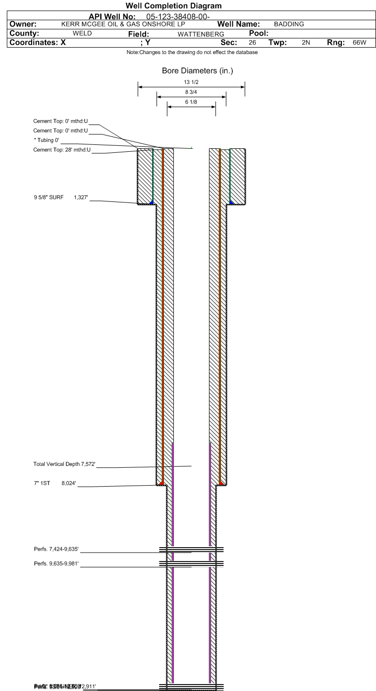 | | Perforation Data: | | Interval Top: | 7424 ft. | # Of Holes: | 0 | | Interval Bottom: | 9635 ft. | Hole Size: | |