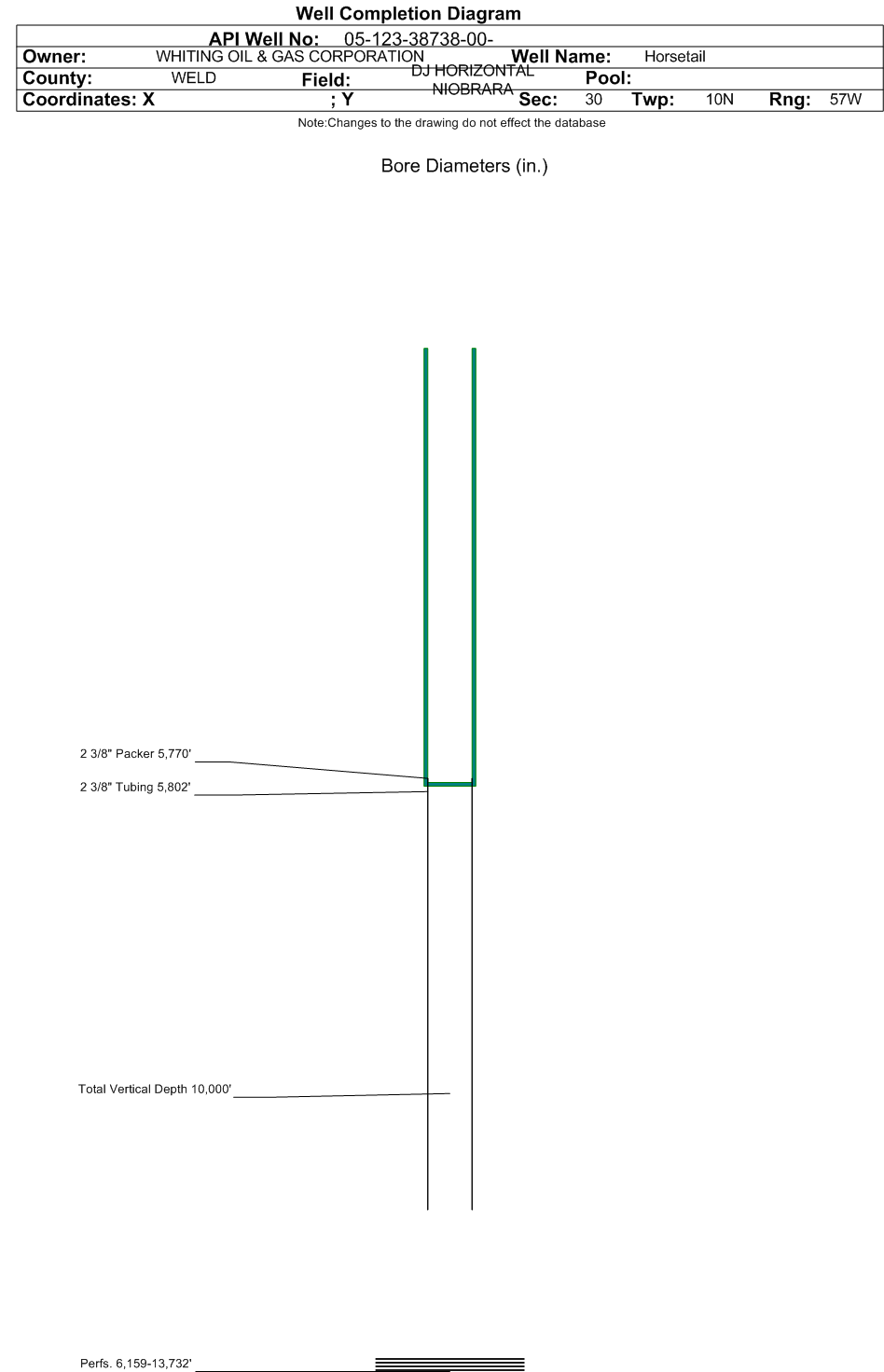 | | Perforation Data: | | Interval Top: | 6159 ft. | # Of Holes: | 1440 | | Interval Bottom: | 13732 ft. | Hole Size: | 0.375 in. |