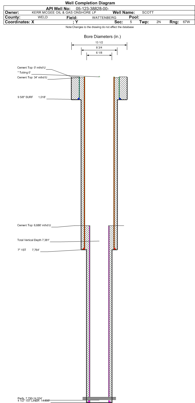 Cement:Sacks: 786, Top: 34 ft., Bottom: 7764 ft., Determination Method: CBL