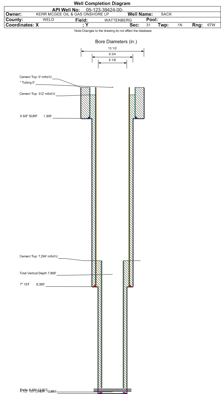 Cement:Sacks: 753, Top: 312 ft., Bottom: 8389 ft., Determination Method: CBL