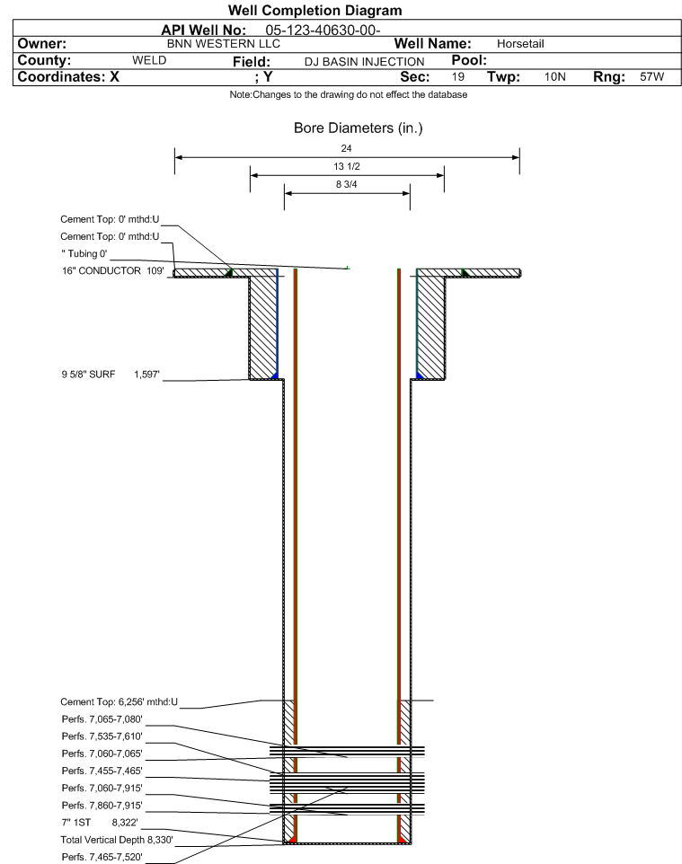 Wellbore #00             Wellbore Classification: DSPW             Status: IJ - 3/16/2016             Measured TD: 8348 ft.    Vertical TD: 8330 ft.