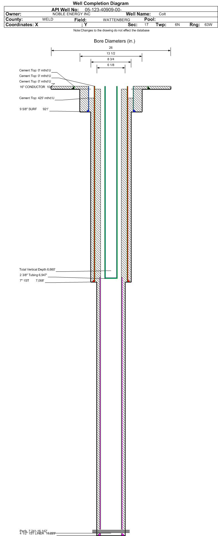 Cement:Sacks: 589, Top: 425 ft., Bottom: 7068 ft., Determination Method: CBL