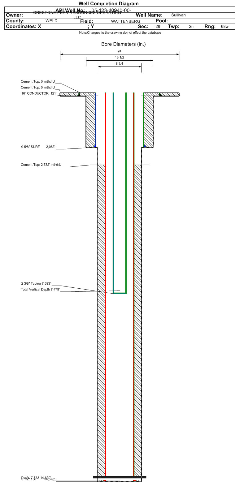 Cement:Sacks: 2255, Top: 2732 ft., Bottom: 14698 ft., Determination Method: CBL