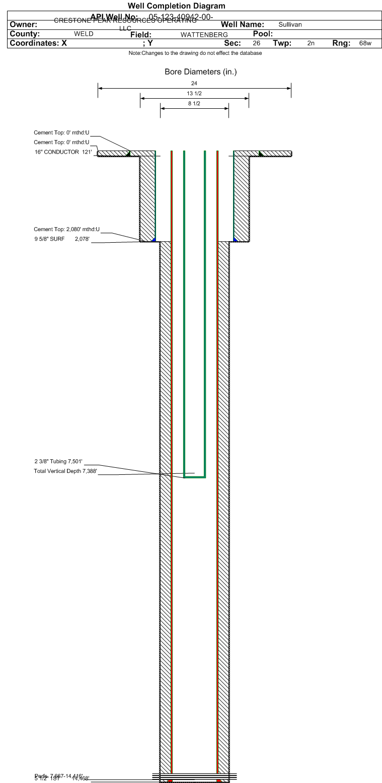 Cement:Sacks: 2224, Top: 2080 ft., Bottom: 14481 ft., Determination Method: CBL