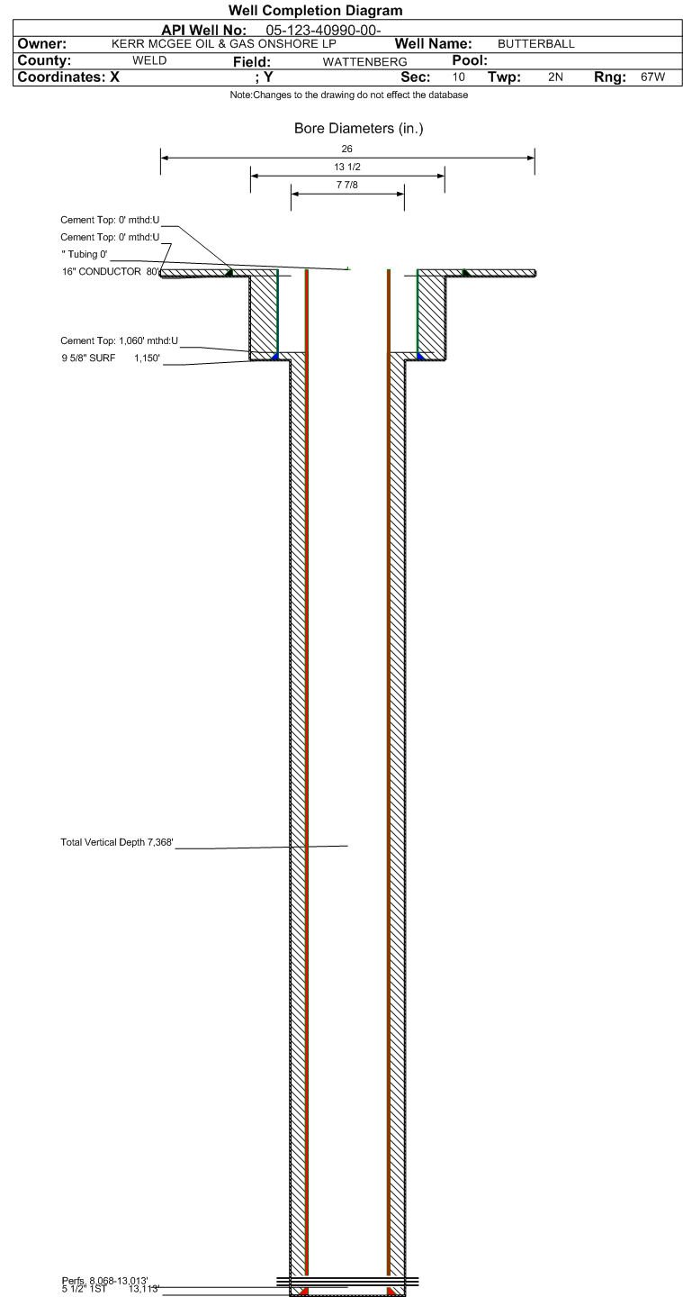 Cement:Sacks: 1890, Top: 1060 ft., Bottom: 13113 ft., Determination Method: CBL