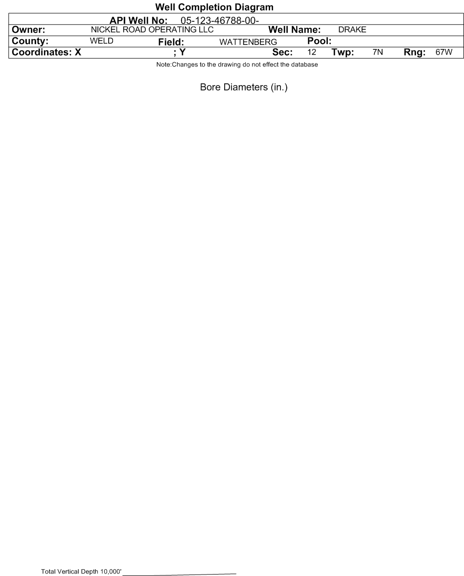 Wellbore #00 Wellbore Classification: Status: PR - 6/1/2025 Measured TD: | Wellbore Data for Original Wellbore | Wellbore Classification: PR - 6/1/2025 | | Wellbore Permit | HORIZONTAL | | Permit #: | | Expiration Date: | 6/4/2026 | | Proposed Top PZ Location: | Sec:7 Twp: 7N 66W | Footage: 2512 FNL 160 FWL | | Bottom Hole Location: | Sec:7 Twp: 7N 66W | Footage: 2182 FNL 160 FEL | | Proposed Depth/Form: | 13359 ft. | | Surface Mineral Owner Same: | No | | Mineral Owner: | FEE | Surface Owner: | FEE | | Unit: | | Unit Number: | | | Formation And Spacing: | Code: NBRR , Formation: NIOBRARA , Order: 407-3448 , Unit Acreage: 640, Drill Unit: T7N R66W, Section 7: | | Casing: | String Type: CONDUCTOR, Hole Size: 26 in., Size: 16 in., Top: 0 ft., Depth: 80 ft., Weight: 43 , Citings Type: PLANNED | | Cement: | Sacks: 100, Top: 0 ft., Bottom: 80 ft. | | Casing: | String Type: SURF, Hole Size: 13.5 in., Size: 9.625 in., Top: 0 ft., Depth: 1500 ft., Weight: 36 , Citings Type: PLANNED | | Cement: | Sacks: 608, Top: 0 ft., Bottom: 1500 ft. | | Casing: | String Type: 1ST, Hole Size: 8.5 in., Size: 5.5 in., Top: 0 ft., Depth: 13260 ft., Weight: 20 , Citings Type: PLANNED | | Cement: | Sacks: 1687, Top: 2500 ft., Bottom: 13260 ft. |